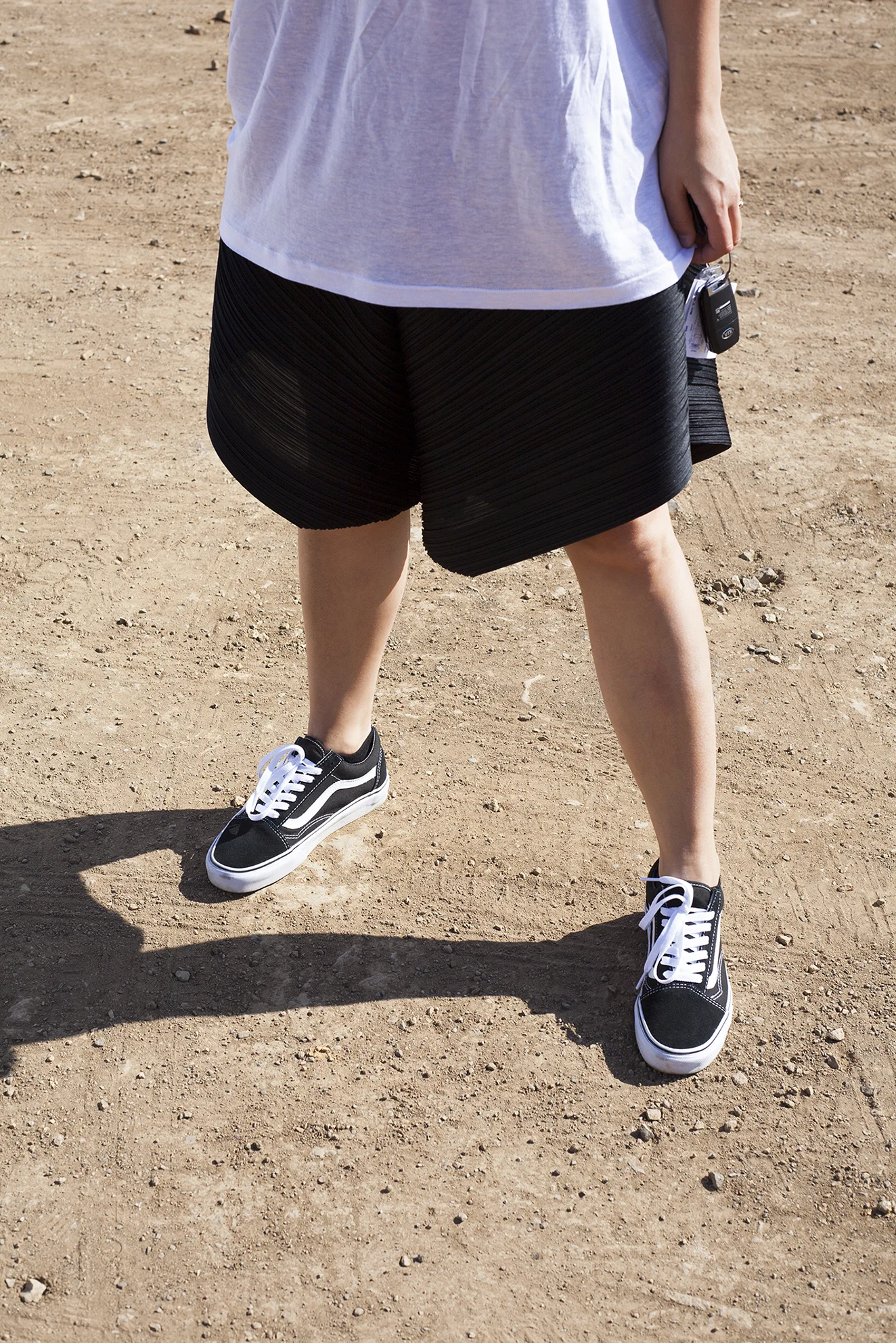THE REFORMATION vintage T-shirt / Issey Miyake pleated bounce shorts at Mohawk General Store (here) / VANS sneakers